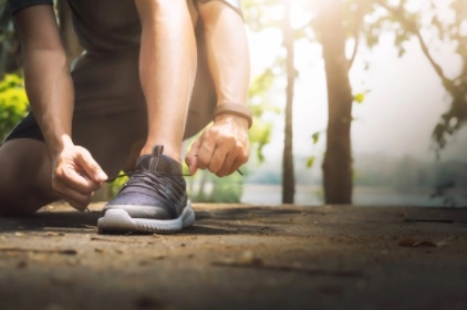 그 남자는 달릴 준비가 되어 있는 것 같아요