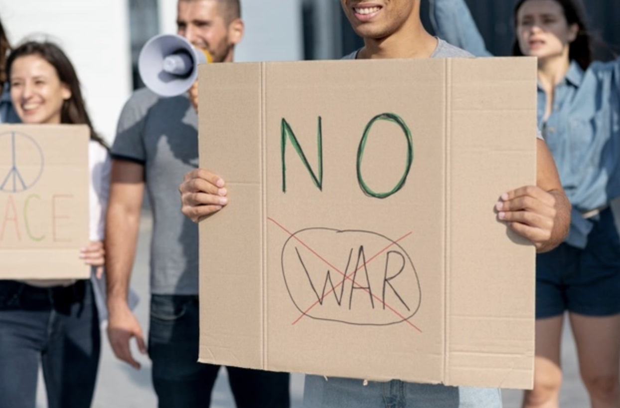 전쟁 반대 시위를 하고 있는 학생들