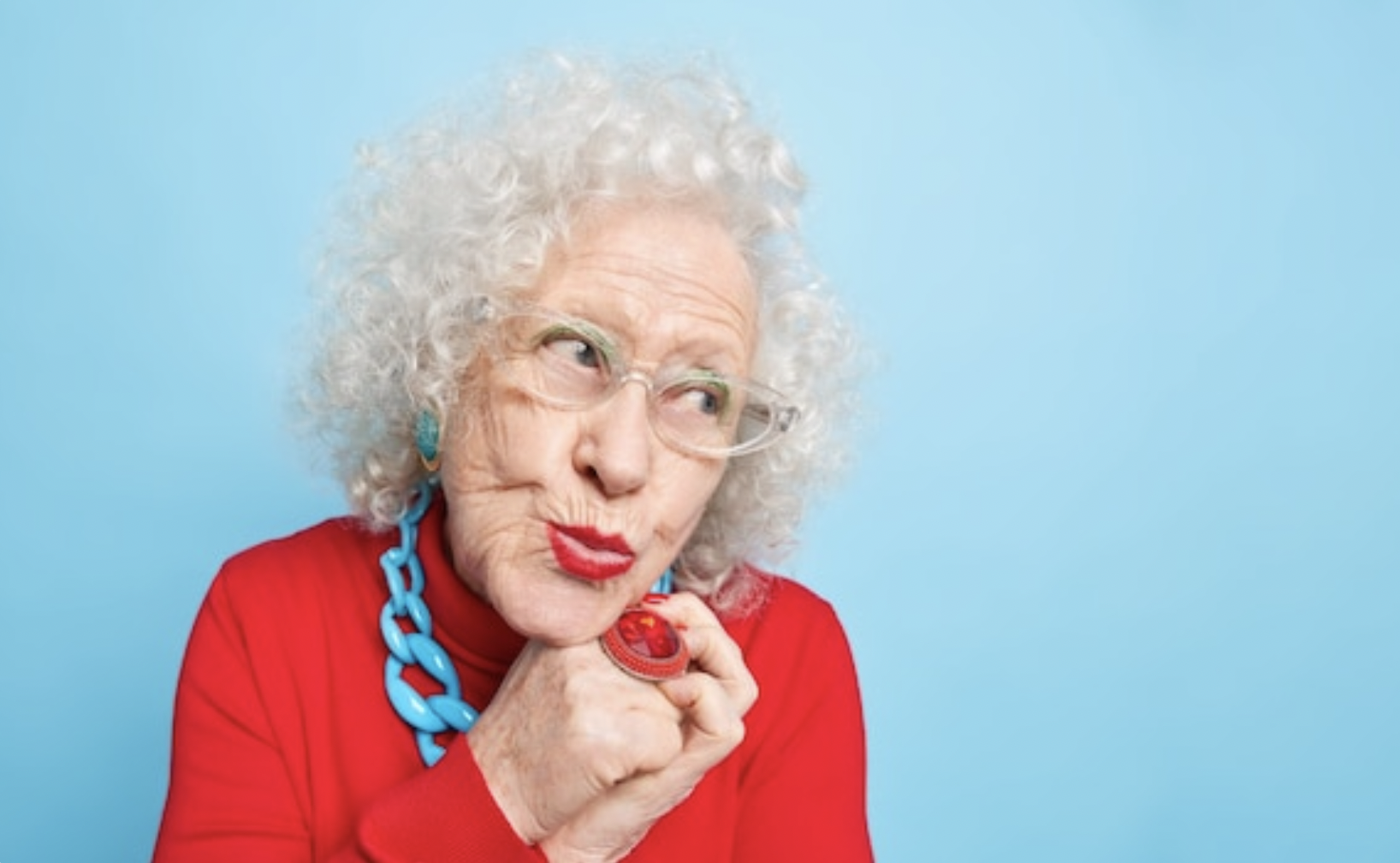The old woman is always mumbling to herself.