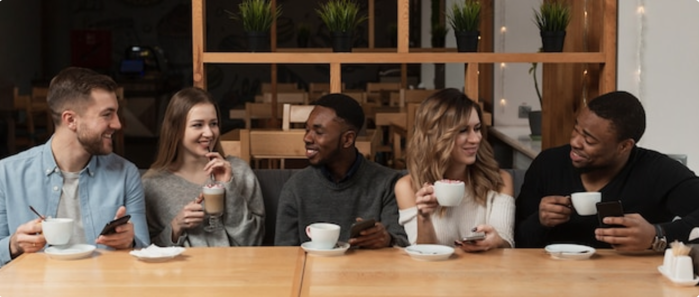 우리는 한 달에 두 번 모여요.