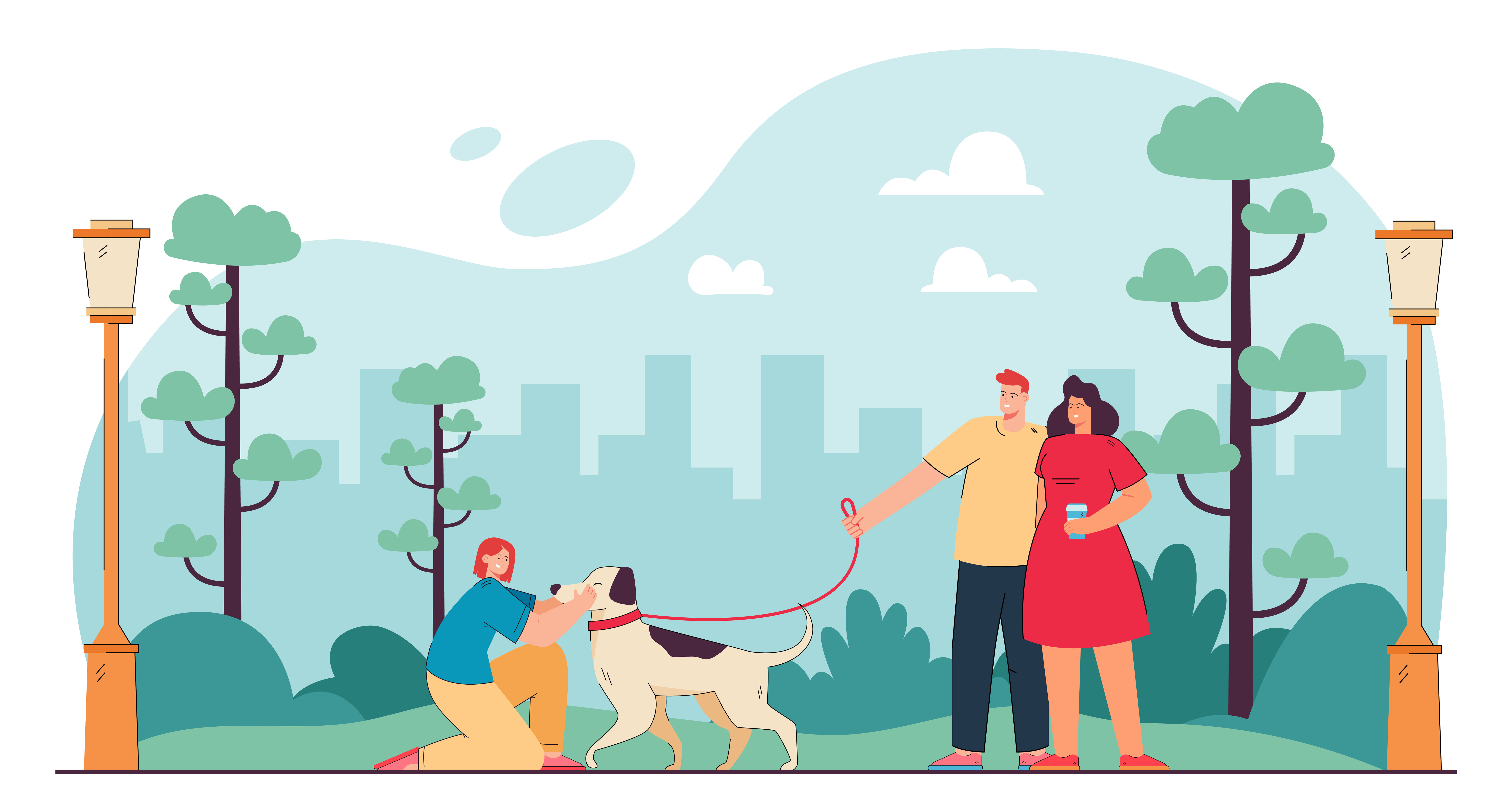 우리는 걸어서 공원을 한 바퀴 돌았다.